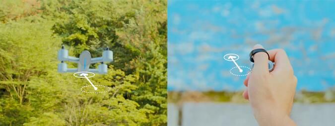 各种形状和大小的无人机如今是层出不穷。但多数都配有一个双摇杆控制器,需双手才能进行操作。一个名叫 this is engineering 的团队,从控制器最简化的角度出发,设计了一个硬币筒大小的遥控器和一个指环,只需带上指环,就可以通过拇指移动来控制无人机的移动方向。