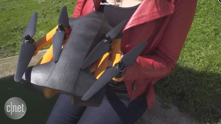 staaker无人机是一款能够如影随形跟拍的设备,它外观看起来跟某种爬虫很像,但它搭载的高清GoPro相机可以在你骑行自行车,冲浪,滑雪或什么户外活动的时候给予清晰的拍摄,50公里每小时的飞行时速满足日常多面拍摄需求;值得一提的是,操作staaker无人机你需要配合人工智能可穿戴的跟踪器跟踪你的拍摄活动。(图源:CNET)