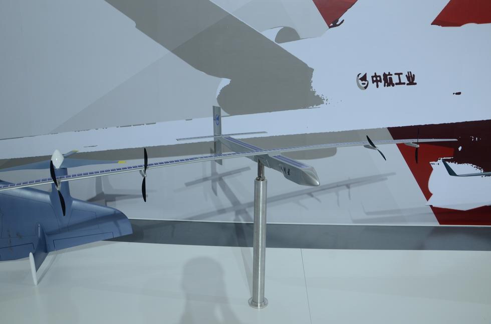 图为中型固定翼无人机在第十一届中国国际航空航天博览会上,中国电子科技集团生产的多款无人机亮相。中国无人机研制呈现到处开花景象。...