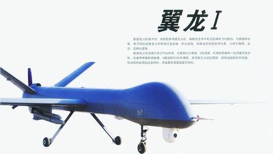 翼龙无人机是中国自行研制的一款中空长航时察打一体无人机。装配一台活塞发动机,具备全自主平台,可携带各种侦察、激光照射/测距、电子对抗设备及小型空地打击武器。可执行监视、侦查及对地攻击任务等任务,也可用于维稳、反恐、边界巡逻等。
