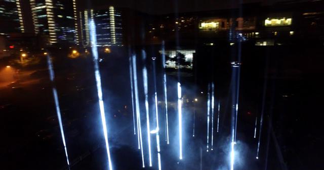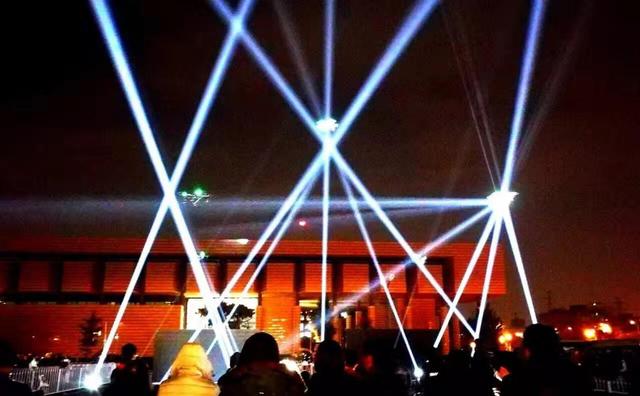 走近清华美院北侧停车场就看到数道光束直冲云霄,背景音乐的节奏律动仿佛敲进在场观众的心中。通过工作人员的介绍了解,这场无人机灯光秀启用了5架无人机,地面上还布置了共29盏电脑灯,能够跟踪无人机进行灯光秀表演,灯光与无人机的配合随着音乐构成了不断变化且体量巨大的“光雕塑”,这样的表演形式在国内是首次上演,现场效果十分震撼!