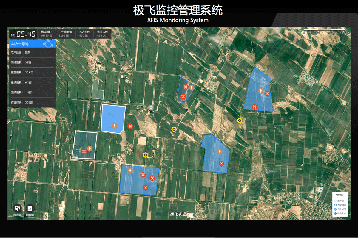 监管管理系统是针对政府和合作伙伴开放的平台,政府可以通过屏幕,实时监看相关区域内无人机飞行的情况和实时作业亩数。