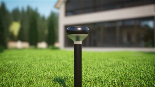 这款监控系统由安装在地面的感应灯和空中的无人机共同组成,实现陆空全方位值守。安装于屋外地面上的感应灯采用了太阳能电池供电,能够自动进行充电,通过搭载的传感器,感应灯能够时刻检测周围附近是否有人通过。