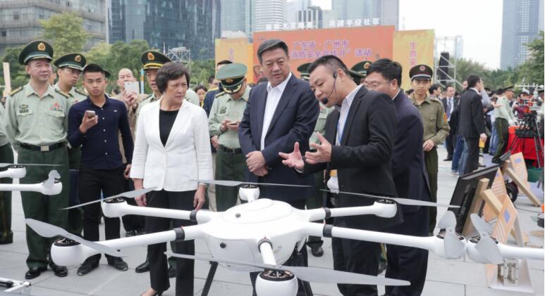 此次消防展示体验项目中,广东省人大副主席罗娟,广东省副省长、公安厅长李春生等高管领导被我们的无人机精彩表演所吸引,在演习结束后,亲自到智璟科技无人机展示现场,与智璟科技销售进行互动。智璟科技销售也通过专业的解说,详细的介绍了智璟科技T60无人机在消防过程中,可对地面实施完备的长时间空中监控, 从而实现以极低的综合成本对传统手段无法涉足的区域进行实时监控和辅助救援, 其智能化和先进性突出体现在巡查路径规划、定点持续监控、火情报警等,并且在制定应急预案、建立快速响应机制、现场火情存档与取证等方面发挥着重要作用在消防应用中的用途。