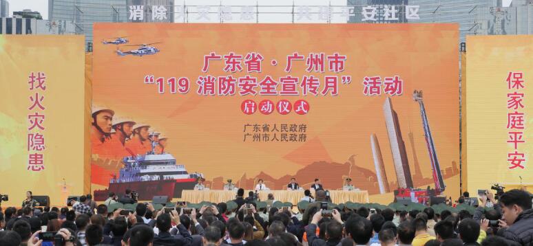 2016年11月9日是全国第26个“119消防日”。今日上午,广东省政府、广州市政府在广州市天河区花城广场隆重举行2016年“广东省·广州市‘119消防安全宣传月’活动启动仪式”。广东省人大副主席罗娟,广东省副省长、公安厅长李春生,公安部消防局副政委詹寿旺,广州市副市长、市公安局局长杨江华,省公安消防总队总队长王郭社、政委黄远杰等领导和广东省、广州市消防安全委员会成员单位负责同志,市消防安全重点单位代表以及社会各界群众共2000余人现场参与体验。