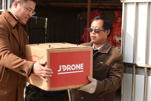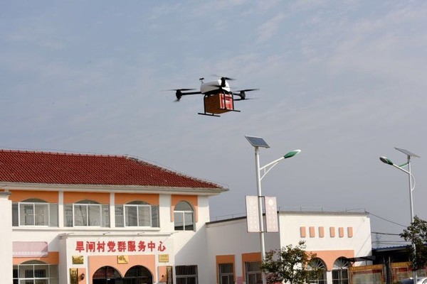 京东无人机在宿迁旱闸村送货