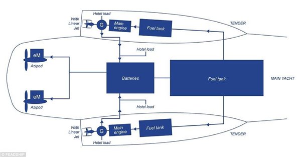 图为该豪华游艇的设计图,全长约74米