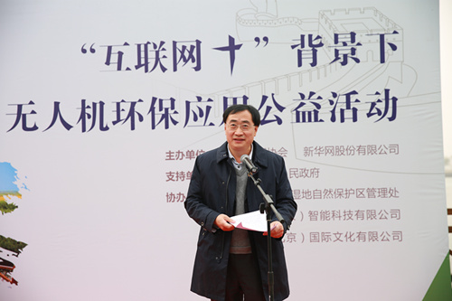 孙胜利主任表示,野鸭湖是首都西北的一道绿色生态屏障,本次活动标志着无人机技术在野鸭湖湿地保护工作中的正式应用,并呼吁社会各界保护湿地。