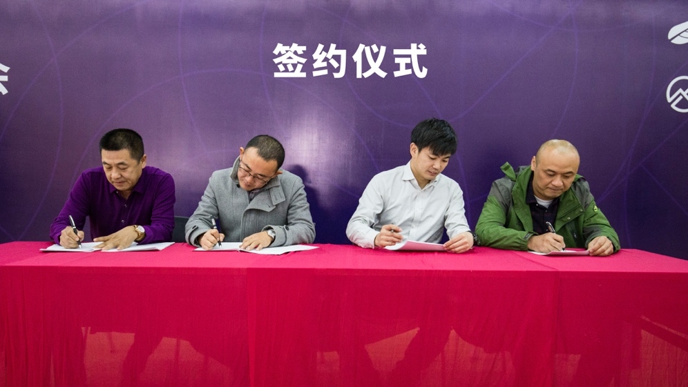 极飞与合作伙伴们站在一起