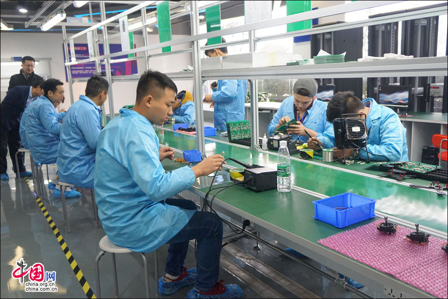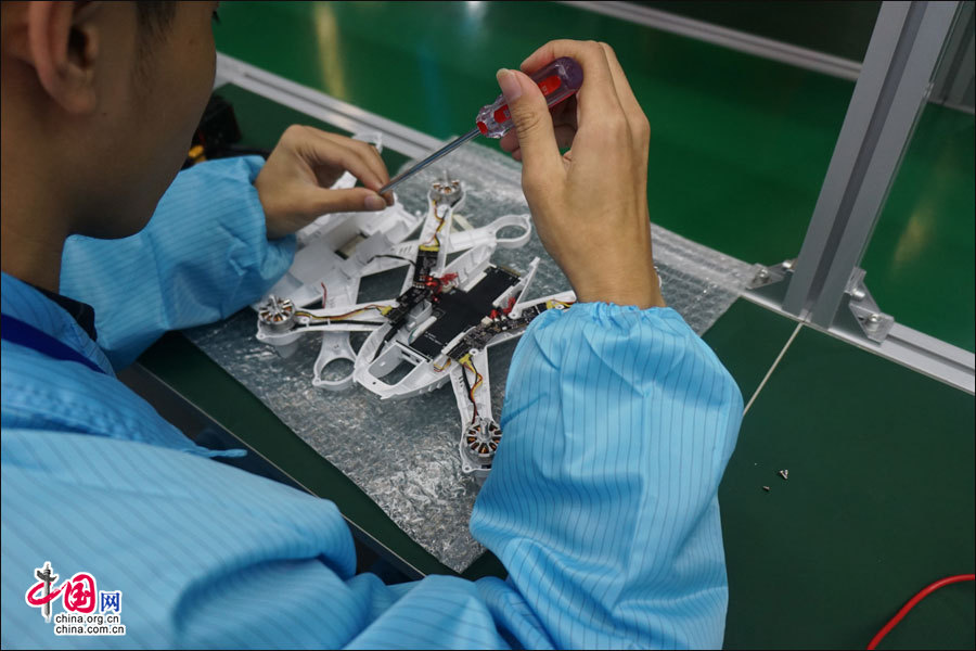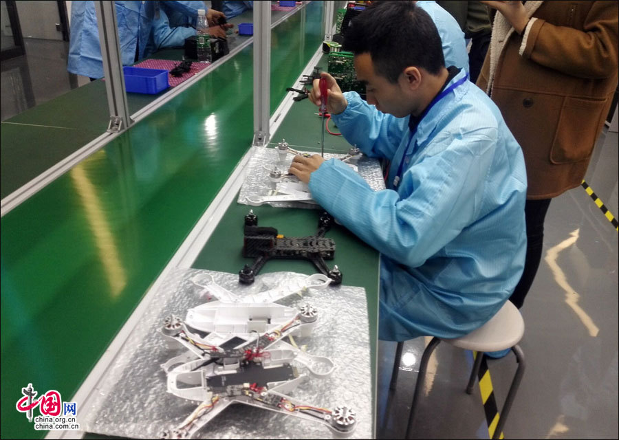 10日下午,记者在专业工程师团队带领下,走进洪泰智造工场见证无人机“大黄蜂”的从芯片、电容/电阻等元件组装到成品下线,最后到顺利试飞的全过程。值得一提的是,此次成功试飞的无人机产品,专利、核心技术、研发(云台、飞控模块)、生产制造、可靠性/射频测试均是百分之百的“锦江出品”。