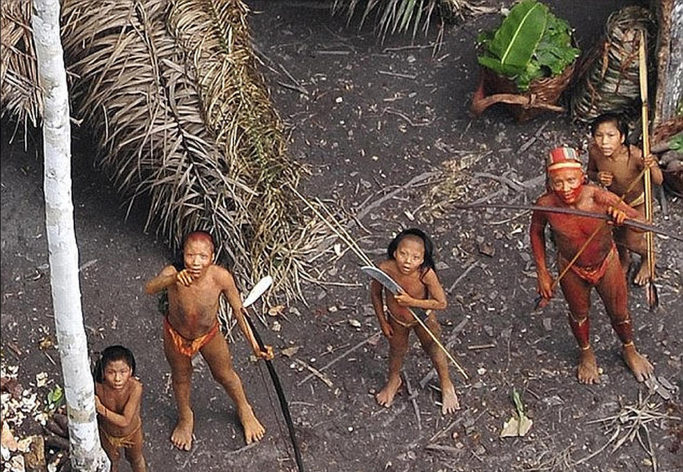 据英国《每日邮报》报道,近日,一名摄影师通过无人机航拍到亚马逊一个与世隔绝部落的精彩画面:看到无人机在自己的家园上空盘旋时,部落里的人纷纷聚集到一片空地上,好奇地看着这个在天上飞翔的奇怪东西,有的人则拿起武器,例如长棍、弓箭和石块,意图击落无人机。