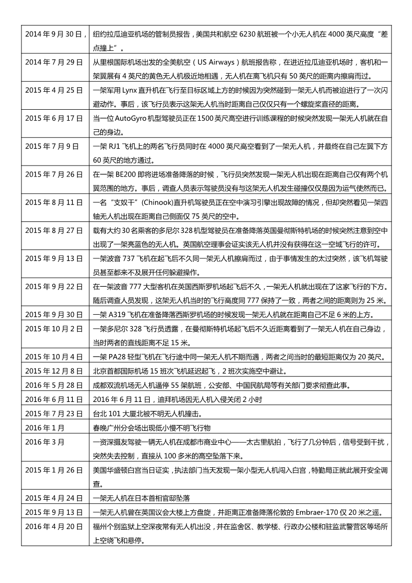 据紫瑞青云提供的一份报告显示,2014年至2016年,已有多起无人机引发的不安全事件记录在案。详情见下图: