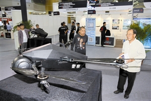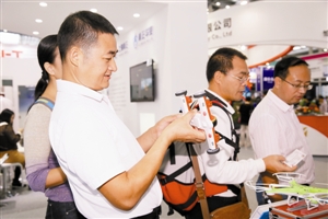 ▲参展观众对小型无人机爱不释手。