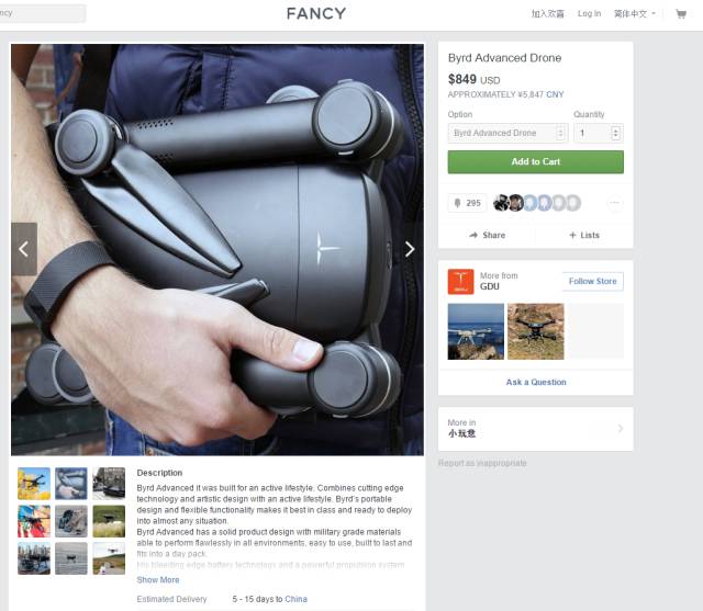 11月18日,普宙无人机BYRD在美国亚马逊和Fancy电商购物平台上线,为冲击美国全民购物狂欢节—— “黑色星期五”蓄势待发。