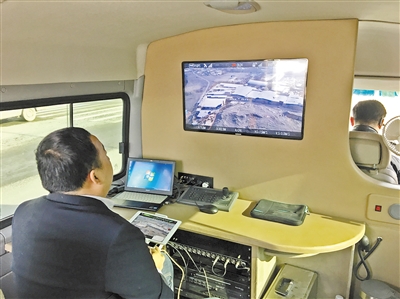 服务车内,无人机传回实时画面。