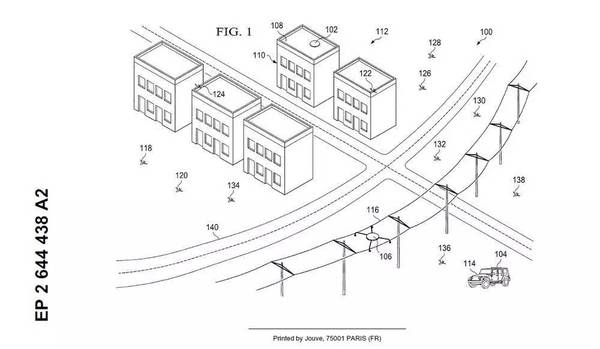 秘密行动当然也在设计计划以内,这项专利同时指出在楼房屋顶上所装置的太阳能基站都是隐藏起来的。换句话说,这种基站其实有可能本来就吸附在电线线缆上,并且随时可以从电网中获取电力支持。它也可能就潜伏在人们眼前,反正没人会去关注那些装在电线周边的黑盒子。如果有几个基站被敌人摧毁,立刻就会有替补上场以保证其工作能力。