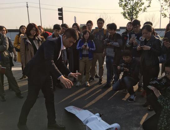 在子夜路演示现场,埃洛克航空自主研发的采集者1代首次亮相,采集者1代是单次起降针对50平方公里三维影像采集的飞行平台,可直接获取5cm精度航空测图,并实现无工具拆装、精确定点回收的无人机产品。此外,采集者1代设计独具匠心,王砚泽在现场将采集者1代轻轻举起,往地上一扔,无人机机身完好无损,但机翼、尾翼随即解体,现场一片惊愕。