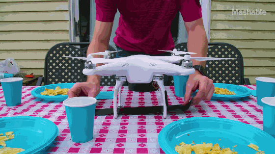 当然,对于某些无人机爱好者来说,不断开发无人机在日常生活中的应用形式,才是最有趣的。我们之前看到了用无人机安装拆卸灯泡、用无人机做一顿感恩节晚餐,现在,无人机又要来挑战收拾桌子。
