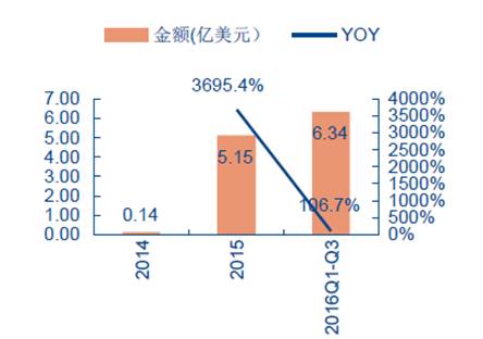 小型航空器2016Q1-Q3出口增长106.7%,消费机无人机销量保持高速增长。我们梳理了小型航空器(名称为“飞机等航空器,空载重量≤2000kg”)出口数据,2016年Q1-Q3出口金额达到6.34亿美元,同比去年Q1-Q3增长106.7%,其中出口美国/香港金额达到2.47/2.19亿美元,欧洲地区出口金额相对分散。以上数据在一定程度上反映了消费级无人机的市场需求,今年前三季度,消费机无人机销量仍然保持高速增长。