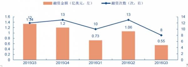 消费级无人机企业融资额下滑。全球无人机行业2016年Q3的融资次数和融资金额均出现了较大幅度的下滑,仅有8家企业获得了5500万美元的融资。另外,由于大疆产品迭代迅速而且价格更具优势,美国知名无人机制造商3DRobotics彻底退出无人机制造领域。我们认为,大疆在消费级领域拥有明显的优势,市场占有率在70%左右,后发进入厂商需要面对大疆品牌效应+产品迭代+降价策略的挑战,很难与其进行正面竞争,融资降温反映出行业竞争的白热化。