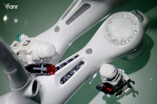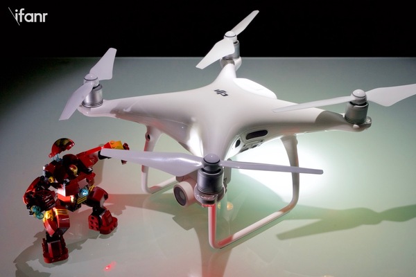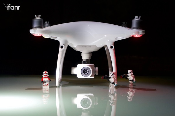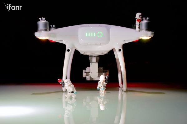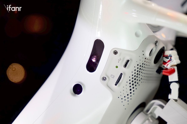从侧面看(上图),与 Phantom 4 的最大分别是多了红外线传感器。