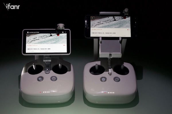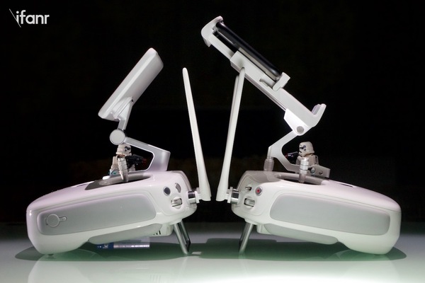 Phantom 4 Pro 遥控器(包括不带屏幕的)(上左),金属屏幕支架采用一体化设计,扣得更牢固。