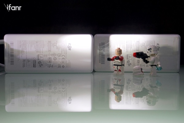 左方是 Phantom 4 Pro,右方是 Phantom 4(上图),充电器规格完全一样。