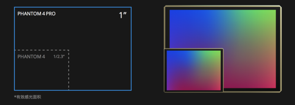 虽然 Phantom 4 Pro 视角狭窄了少许,但有效感光面积大跃升(上图)。