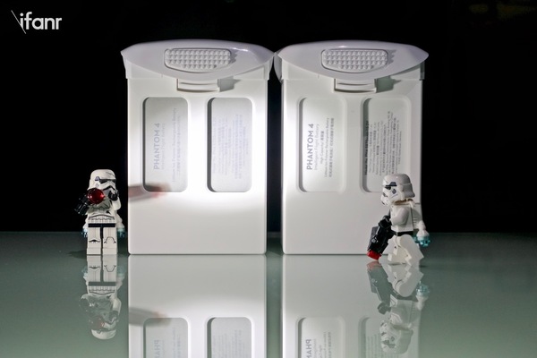 左方是 Phantom 4,右方是 Phantom 4 Pro(上图)。Phantom 4 的电池容量为 5350mAh,而 Phantom 4 Pro 的电池为 5870 mAh。不过,大疆官方表示两者可以共用。