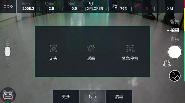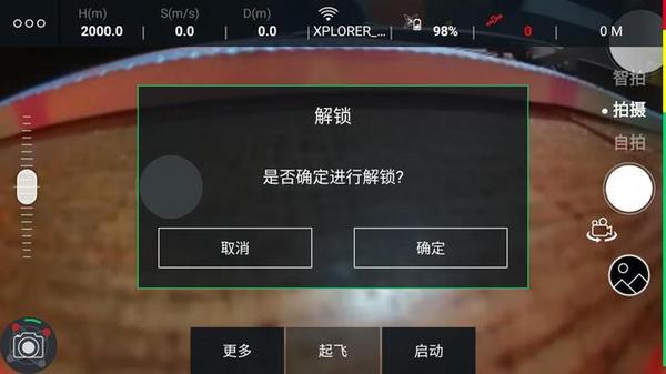 开机之后,螺旋桨式锁定的,我们需要点启动对其进行解锁,然后点起飞就可以开始飞行了。