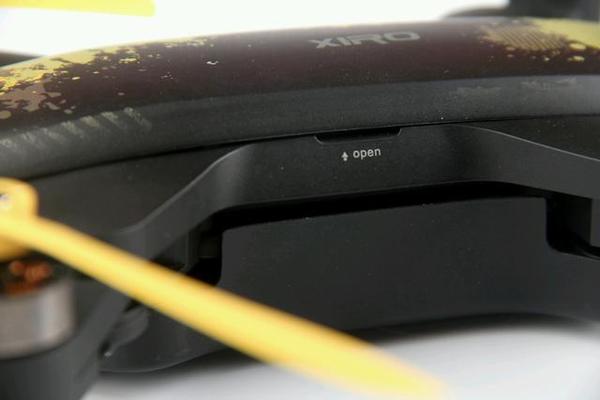 XPLORER Mini电池采用推拉卡扣式一体设计,安装时需打开机身背部。轻轻按住机身背部塑料板两边箭头位置即可打开机盖!置入电池于卡槽,然后往前推送就可以固定!其实笔者刚开始也怀疑电池是否能固定在机身内部。比如无人机在飞行过程中突然断电,那是极度危险的。不过试飞了几天发现这个担心是多余的,电池很牢靠!