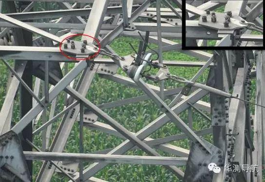 图为多旋翼无人机近距离拍摄到的电塔某处弹簧销损坏的照片。