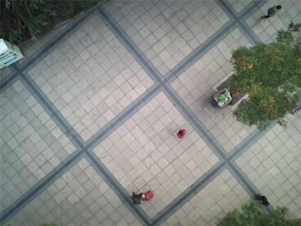 升空之后,你会察觉到Mambo作为一架小飞机有它自己的局限性。Mambo不能像一些体格壮硕的大无人机那样爬升到很高的高空环顾四周,它飞到一定高度之后便不会再强行提升自己的飞行高度,而是尽力保持悬停在一个安全的高度上。从它机身底部的摄像头拍摄的地面照片就看得出来,Mambo有那么点点小恐高。