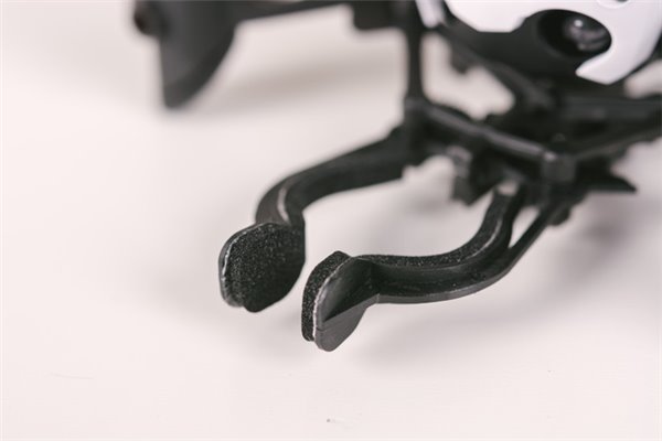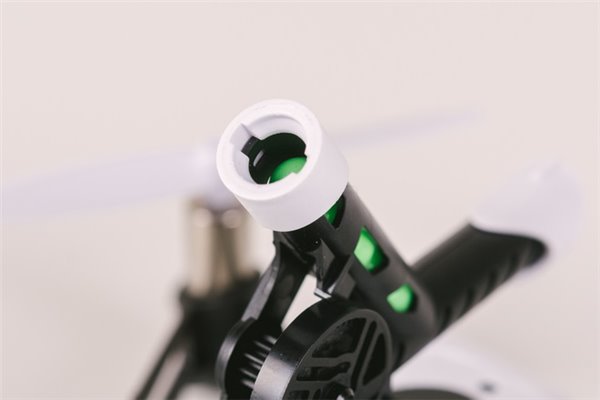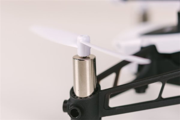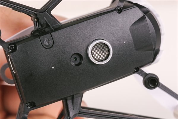 Mambo的机身材质主要还是以塑料为主,因为要兼顾成本和安全性的考量,它机身上的金属部分只有四个旋桨的马达。除了这几块亮闪闪之外,螺旋桨,机身核心部分,以及框架等结构皆为塑料制,而且比较柔软,加上保护螺旋桨的流线体,飞行时对飞机自身和其附近人的人身安全相对硬质材料来说都要略好一些。