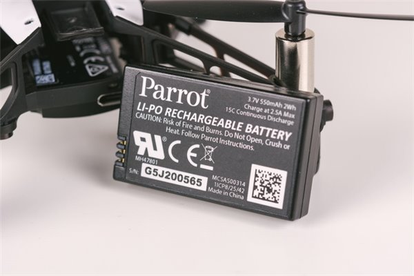 前面提到Parrot给Mambo配备的电池和Swing是一模一样的550mAh锂聚合物电池,没办法,小飞机只能塞小电池,而小电池就意味着较短的续航时间。根据试飞员的报告,Mambo从满电池到电量不足3%直接迫降的平均滞空时间为6分钟不到。这个时间对很多人来说可能只能刚好过把手瘾,真要玩出什么场面,得多带几块电池备用才行。Mambo没有配充电器,你需要一根USB micro-B数据线,然后把飞机接在PC/充电宝或其他旅充上为电池充电。如果电源能提供2A以上的电流输出,充满一颗电池需要大概半小时不到的时间,但这个时间相比飞行时间仍然是过长了,而且期间Mambo还无法使用,若能Parrot能提供一个专门为电池设计的充电装置就要方便得多。