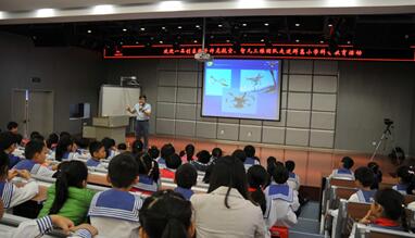 在无人机课堂中,神龙航空创始人杨柳青通过视频和PPT展示,向小学生们介绍了一些无人机的相关知识,比如无人机基本构造、工作原理等,科普了现今已投入使用的一些无人机。在学习过程中,小学生们展现了无限的兴趣、创意和想法,积极回答问题并提出自己的问题。