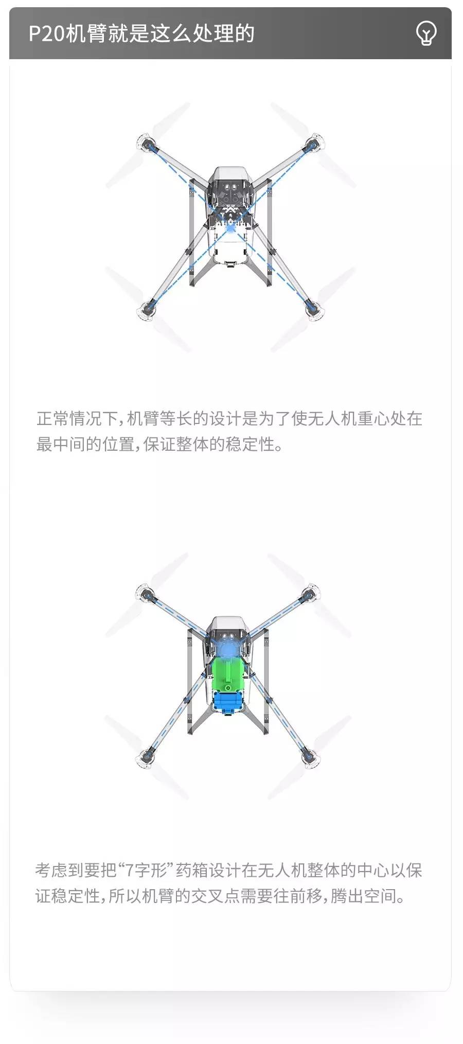 关于极飞P20前后机臂不等长这个设计的小细节上,这样小心思你理解了吗?