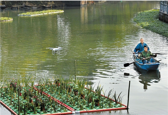 近日,德清县洛舍镇杨树湾港的上空出现了一位特殊的“河长”——无人机,和保洁船共同行动。无人机开启“天眼”模式,从空中实时查看河道污染治理情况和水质变化情况,助力“五水共治”。