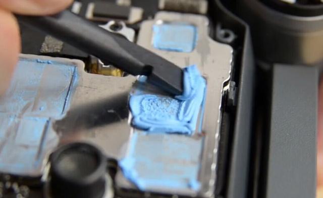 ▲继续拆解前,还需要先将散热硅胶铲除掉
