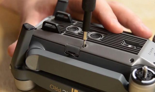 ▲翻转无人机底部,将所有螺丝拧出