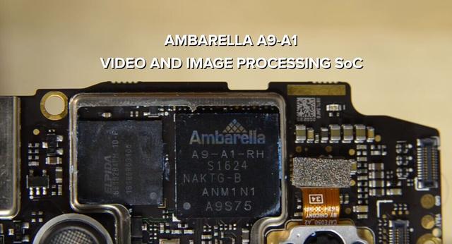 ▲而在主版中心位置的左上角,则是机器的核心部件安霸A9影像处理器了,该SOC对于4K视频有着强悍的处理能力,进一步提升了航拍图片的质量