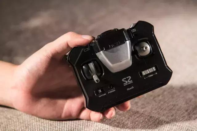 Sliverlit 这款直升机最大的特点,也是小二觉得设计的很巧妙的一点,就是他能够折叠。折叠起来之后还能塞到遥控器里,变成一个小相机!