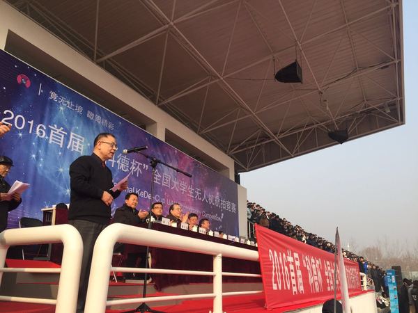 12月19日,2016首届“科德杯”全国大学生无人机航拍竞赛开幕式在首都师范大学科德学院运动场隆重举行。本次竞赛是国内首次举办的全国大学生无人机航拍竞赛,来自全国174所高校和单位共570余位参赛选手共同见证这一高科技、高水平的无人机航拍及微视频创作大赛的启航。
