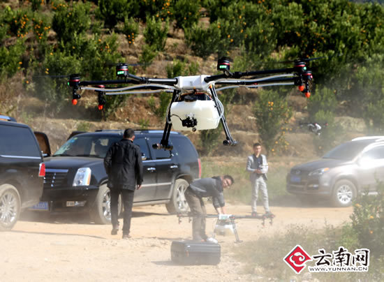 据了解,丽江杭瑞农业综合开发有限公司定制了20台无人机,目前到位的5台,明年2月份20台全部到位。植保机有多种飞行模式,航线喷洒,人工喷洒,定点喷洒,雷达扫描跟踪喷洒。喷洒效果是人工的40~60倍,在成本上比农民请人工喷洒降低25%左右。
