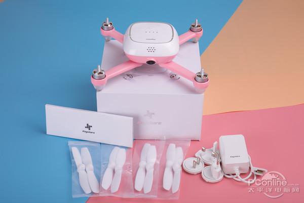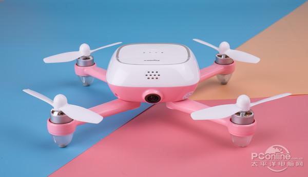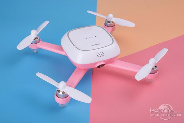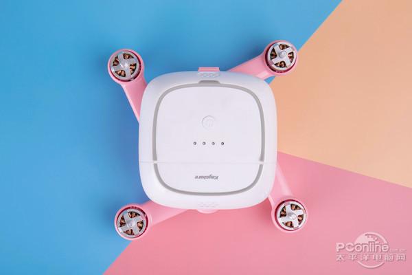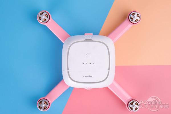 基石KIMON无人机可以说是小编见过颜值最高的无人机,没有之一,外观造型圆润的一个正方形盒子机身,在加上纯色的折叠式机臂,表面采用高亮的塑料材质,搭配鲜亮颜色,显得特别年轻有活力,基石KIMON无人机总共是拥有6种时尚年轻的配色版本,而这次评测的是魔幻粉版本。