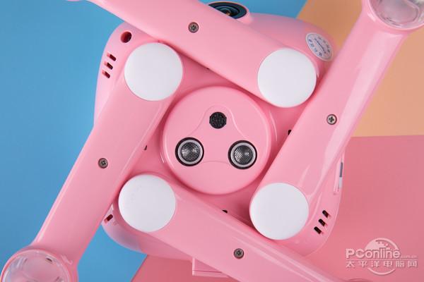 在无人机的底部,除了有室内稳定系统传感器以外,还有四个通风口,在飞行过程中,给发热的无人机处理器以及电池,提供扇热,避免因为温度过高而出现飞行不稳定的情况。
