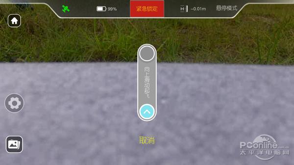 在进入后,增加了解锁飞控的按键,点击解锁后,向上滑动,即可起飞。