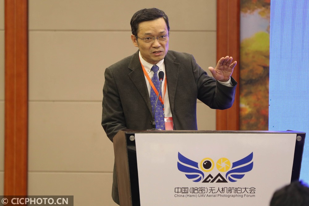 新华社高级记者王建华在无人机航拍沙龙活动上发言。