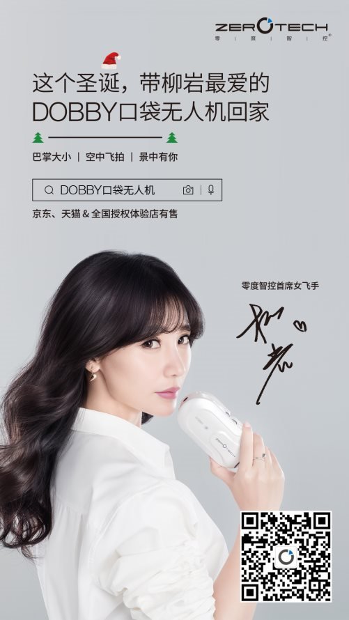 此次双旦礼物季,DOBBY的出品方零度智控可谓做足了节日气氛,除了在礼盒装上用双电和三电不同版本分别迎合旅行飞拍用户和飞拍发烧友用户的需求之外,还邀请了女神柳岩作为其“首席女飞手”,亲身教大家大玩DOBBY。