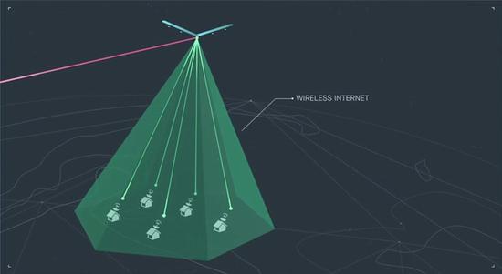 “天鹰”在运行时会在半径为3公里的圆形空中区域按照固定的轨迹循环飞行,其通过在这一区域的长时间停留为地面半径约50公里的区域发送激光信号,利用机载激光通信系统向地面基站提供高速互联网接入服务,而无人机间也能互相传输信号,通过中继信号扩大区域范围。